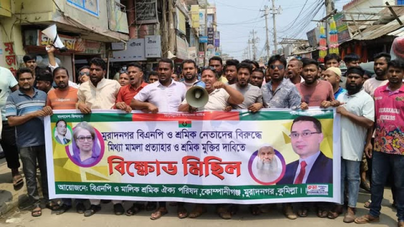 মুরাদনগরে বিএনপি ও শ্রমিক নেতাদের মুক্তি দাবীতে বিক্ষোভ