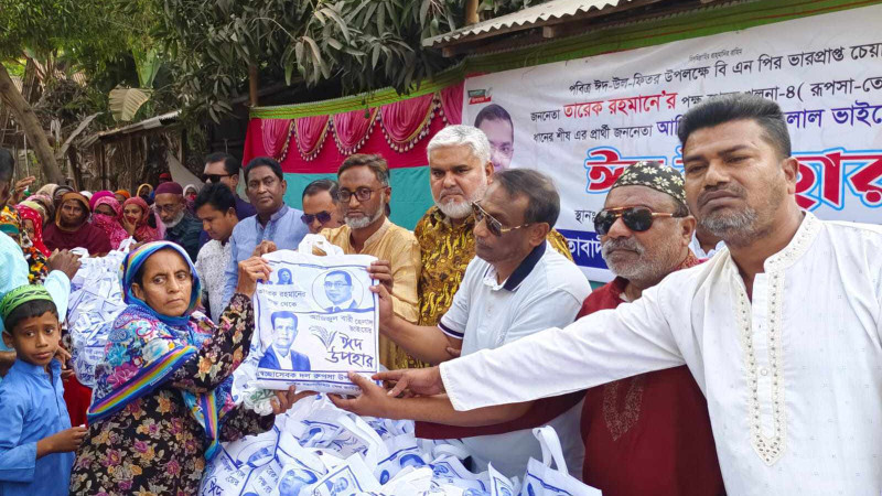 বিএনপি নেতা আজিজুল বারি হেলালের পক্ষ থেকে রূপসায় ঈদ উপহার বিতরণ