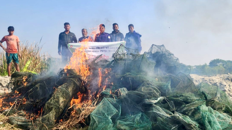 লালমোহনে দুই শতাধিক চায়না দুয়ারি জাল জব্দ