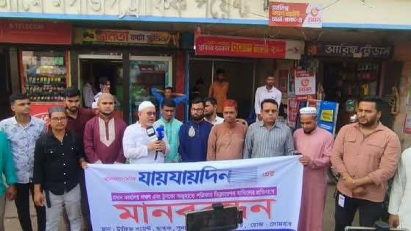 যায়যায় দিন’র ডিক্লারেশন বাতিলের প্রতিবাদে ছাতকে মানববন্ধন।