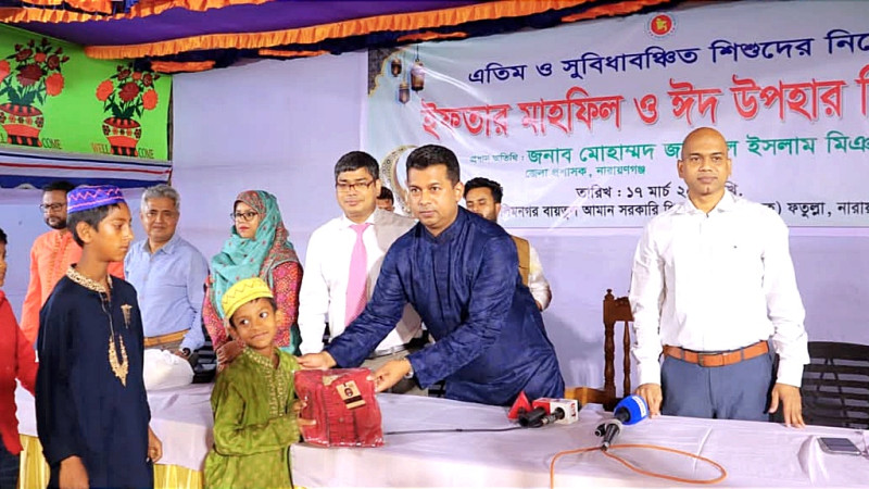 নারায়ণগঞ্জে এতিম শিশুদের সঙ্গে জেলা প্রশাসনের ইফতার ও ঈদ উপহার