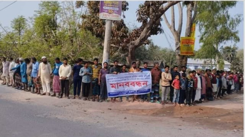 খানসামায় ইউপি চেয়ারম্যান অবৈধ ডাম্প ট্রাক চলাচল বন্ধের দাবি ও মানববন্ধন