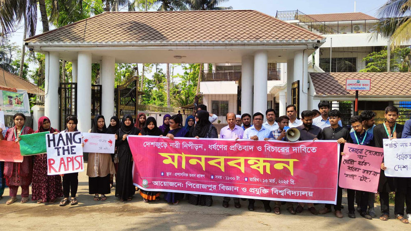 ধর্ষণ,নারী নির্যাতন ও নিপীড়নের ঘটনায় দৃষ্টান্তমূলক শাস্তির দাবিতে পিবিপ্রবিতে মানববন্ধন