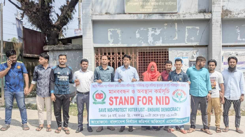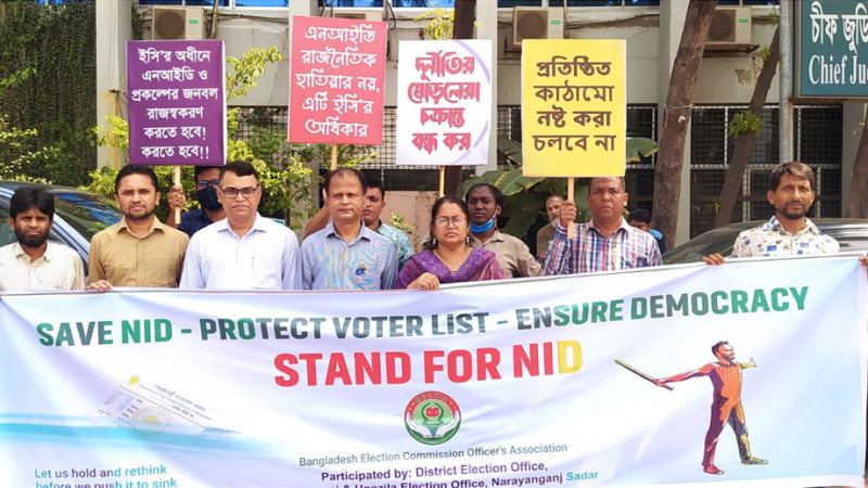 এনআইডি সেবা ইসির অধীনে রাখার দাবিতে নারায়ণগঞ্জে মানববন্ধন