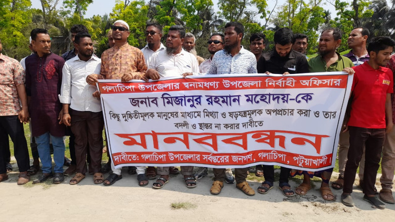গলাচিপায় ইউএনও'র বিরুদ্ধে অপপ্রচার বন্ধের দাবীতে মানববন্ধন