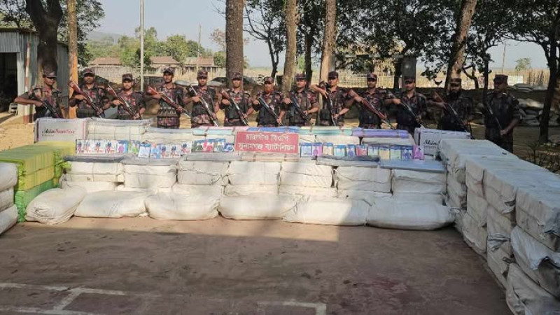 তাহিরপুর সীমান্তে দুই কোটি টাকার ভারতীয় পণ্য জব্দ