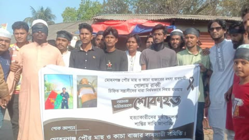 মোহনগঞ্জে খুনির ফাঁসির দাবিতে মানববন্ধন