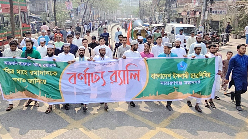 নারায়ণগঞ্জে মাহে রমজানকে স্বাগত জানিয়ে ছাত্রশিবিরের র্যালি