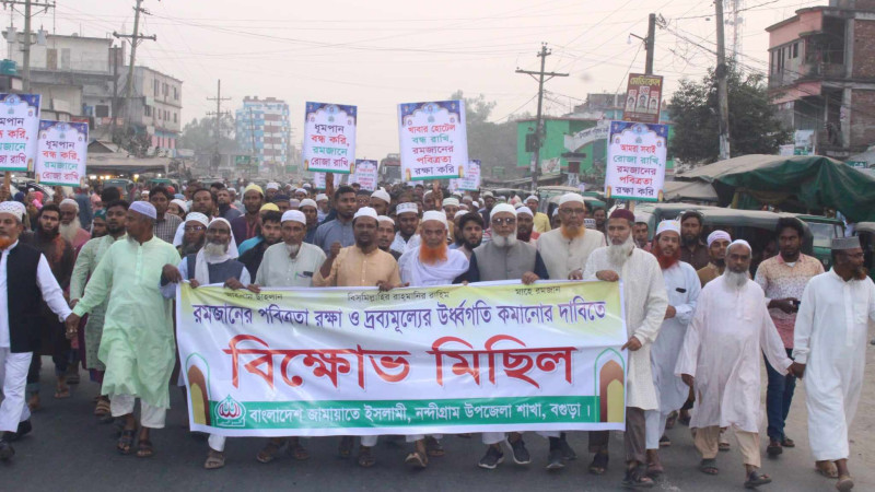রমজানের পবিত্রতা রক্ষা ও দ্রব্যমূল্যের ঊর্ধ্বগতি কমানোর দাবিতে নন্দীগ্রামে জামায়াতের বিক্ষোভ মিছিল