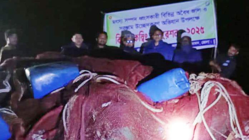 লালমোহনে মৎস্য সম্পদ ধ্বংসকারী অবৈধ জাল উদ্ধার