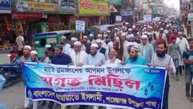 মাহে রমজানকে স্বাগত জানিয়ে শায়েস্তাগঞ্জে জামায়াতে ইসলামীর মিছিল অনুষ্ঠিত