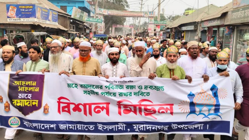 দ্রব্যমূল্যর ঊর্ধ্বগতির প্রতিবাদে ও রমজানের পবিত্রতা রক্ষার দাবীতে মুরাদনগরে মিছিল