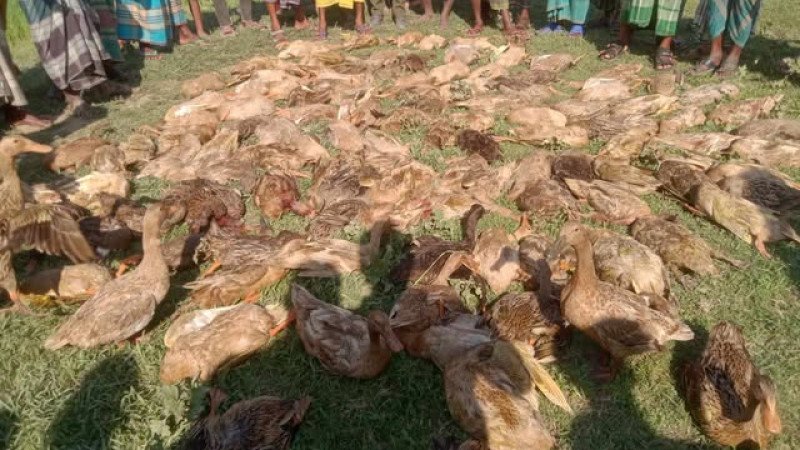 পাখি শিকারীদের দেয়া বিষটোপে মারা গেল খামারির পাঁচ শতাধিক হাঁস