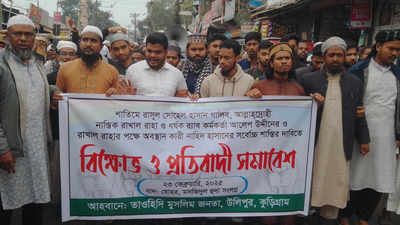 উলিপুরে তাওহিদি মুসলিম জনতার বিক্ষোভ অনুষ্ঠিত