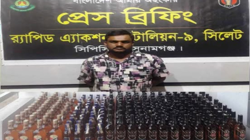 তাহিরপুরে বিদেশী মদসহ র্যাবের জালে এক যুবক