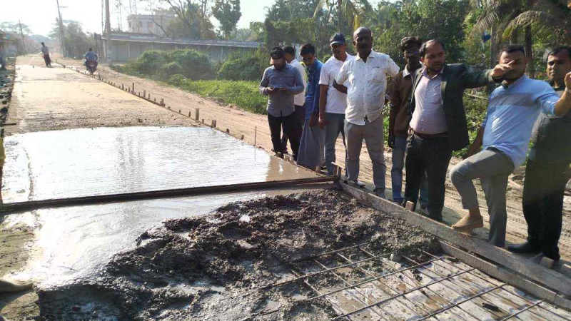 তালতলীতে রাস্তার আরসিসি ঢালাইয়ে অনিয়ম,কাজ বন্ধ
