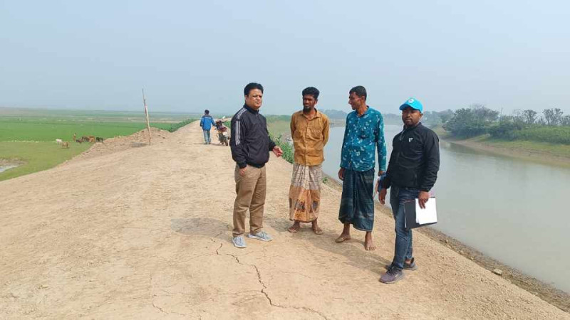 ধর্মপাশায় হাওরে ফসলরক্ষা বাঁধের কাজ পরিদর্শনে পানি সম্পদ মন্ত্রণালয়ের সিনিয়র সহকারী সচিব