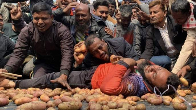 রাজশাহীতে মহাসড়কে আলু ফেলে চাষিদের প্রতিবাদ