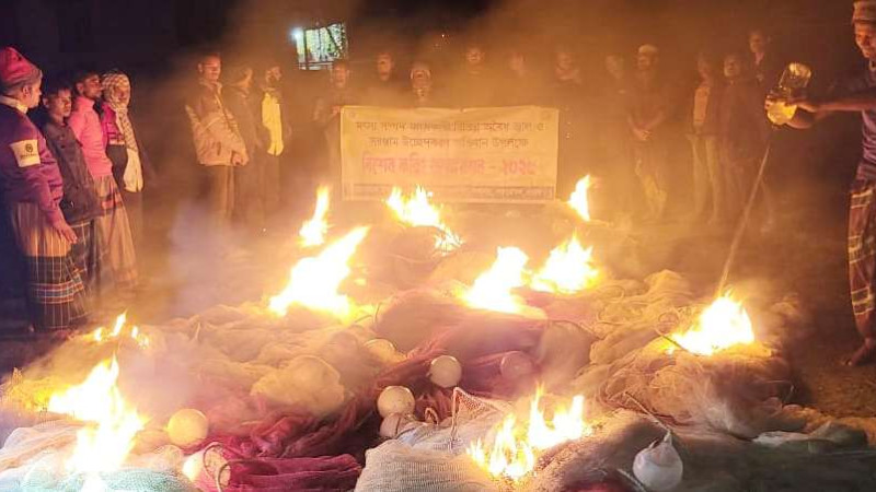 লালমোহনে ১০ লাখ টাকার অবৈধ জাল আগুনে পুড়িয়ে ধ্বংস
