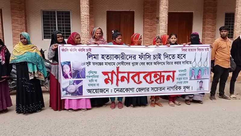 নেত্রকোনায় লিমা হত্যাকাকারীদের ফাঁসির দাবীতে মানব বন্ধন