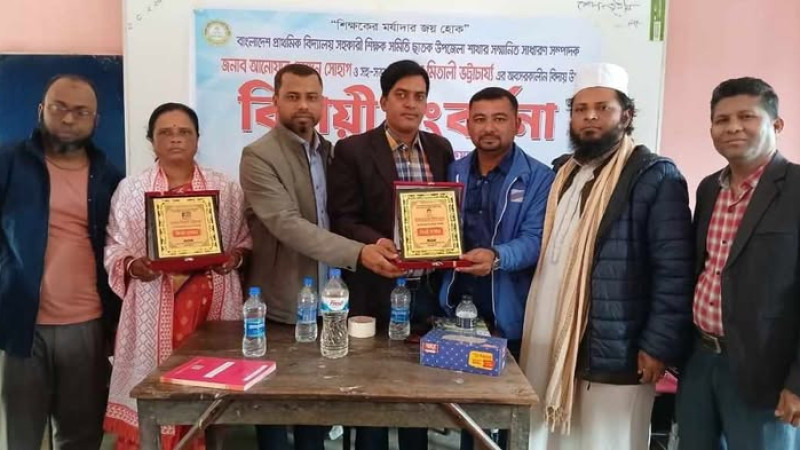 ছাতকে দু'শিক্ষক কে অবসর জনিত বিদায় সংবর্ধনা।