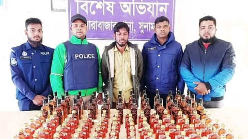 দোয়ারাবাজার ১২১ বোতল ভারতীয় মদসহ মাদক ব্যবসায়িকে গ্রেফতার