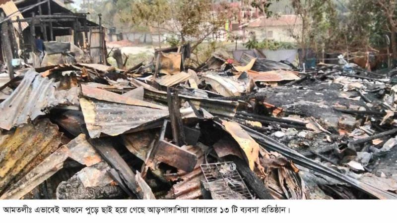 আমতলীতে আগুনে পুড়ে ১৩ টি ব্যবসা প্রতিষ্ঠান ছাই