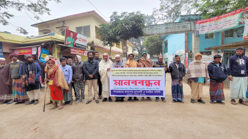 ধর্মপাশায় মসজিদের জমি ও বিল অবৈধ দখলকারীদের বিরুদ্ধে মানববন্ধন