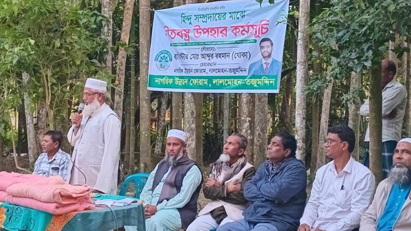 লালমোহনে হিন্দু সম্প্রদায়ের মাঝে শীতবস্ত্র বিতরণ