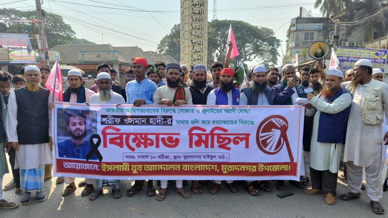 মুরাদনগরে হাদী হত্যার বিচারের দাবিতে ইসলামী যুব আন্দোলনের বিক্ষোভ মিছিল