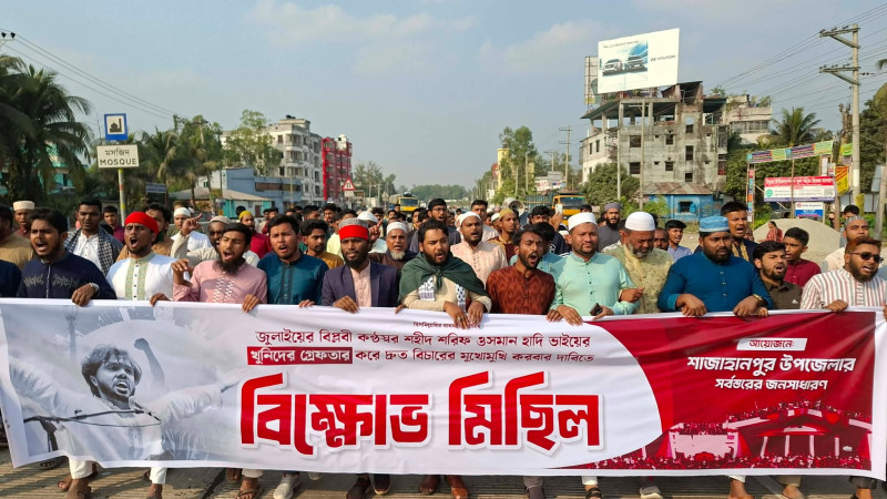 শহীদ শরীফ ওসমান হাদির হত্যার প্রতিবাদে শাজাহানপুরে বিক্ষোভ মিছিল ও সমাবেশ