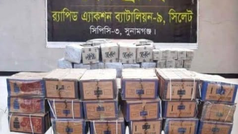 সুনামগঞ্জে বিপুল পরিমাণ ভারতীয় পন্য জব্দ করেছে র্য্যাব