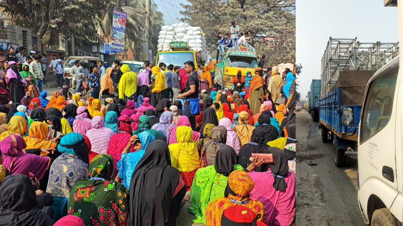 নারায়ণগঞ্জে শ্রমিকদের বিক্ষোভে সড়ক অবরোধ, তীব্র যানজট