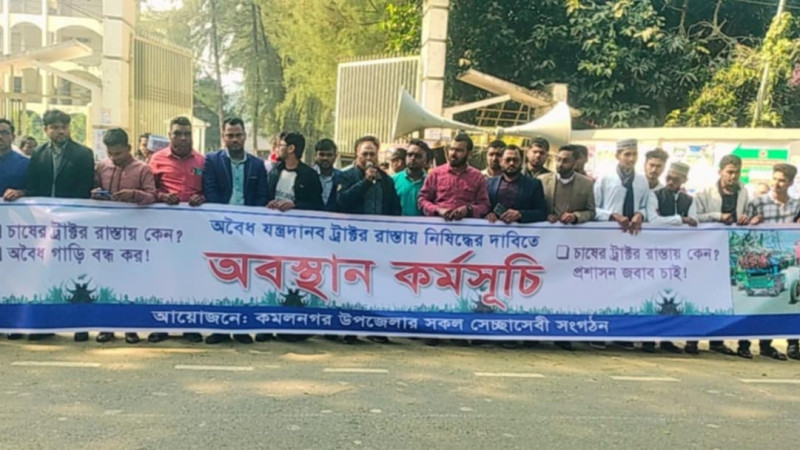অবৈধ প্রানঘাতক ট্রাক্টরট্রলি বন্ধে কমলনগর অবস্থান কর্মসূচি পালন