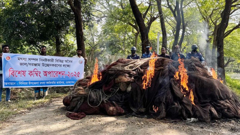 মেঘনা নদী থেকে ৫২ লাখ টাকার অবৈধ বেহুন্দি জাল উদ্ধার