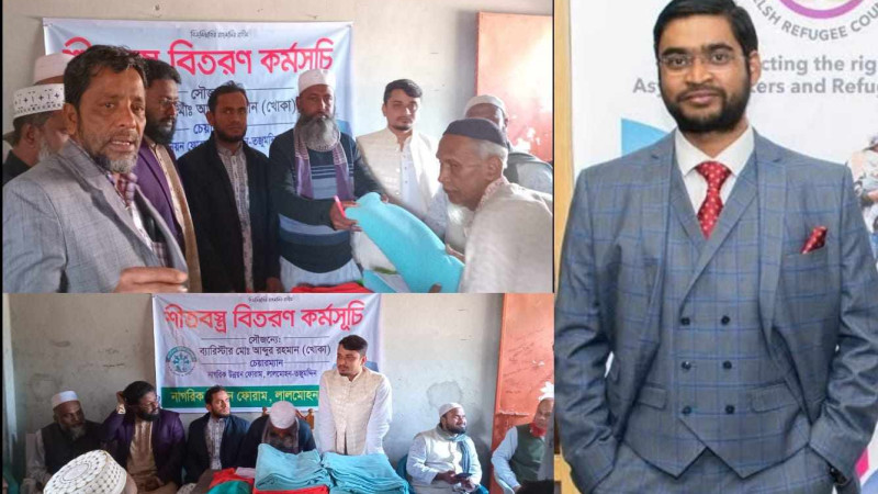 ব্যারিস্টার আব্দুর রহমান খোকার পক্ষ থেকে লালমোহন-তজুমদ্দিনে শীতবস্ত্র বিতরণ