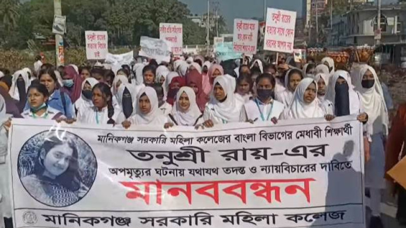 মানিকগঞ্জে তনুশ্রী রায়ের হত্যাকারীদের শাস্তির দাবিতে মানববন্ধন!