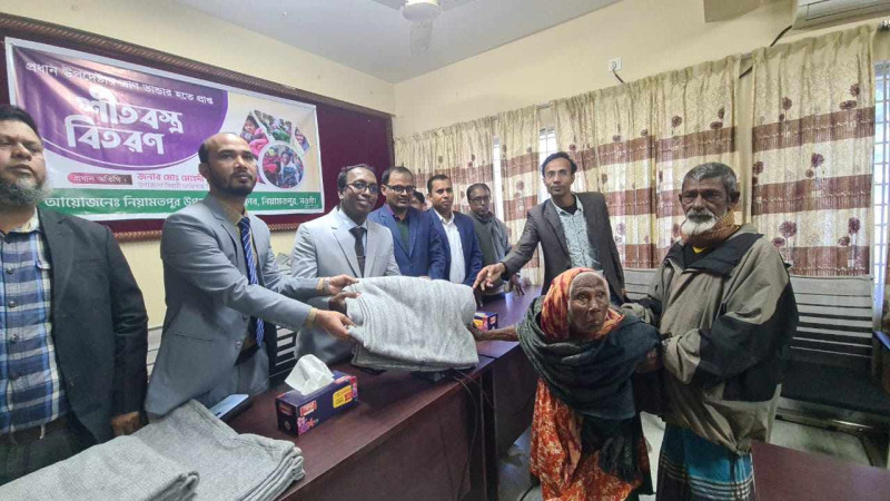 নিয়ামতপুরে উপজেলা প্রেসক্লাবের উদ্যোগে শীর্তাত মানুষদের মাঝে শীতবস্ত্র বিতরণ