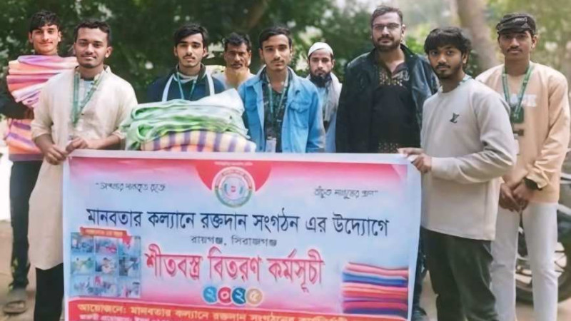 রায়গঞ্জে মানবতার কল্যাণে রক্তদান সংগঠনের উদ্যোগে শীতবস্ত্র বিতরণ