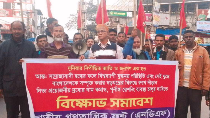 সুনামগঞ্জে দ্রব্যমূল্যের উর্ধগতির প্রতিবাদে (এনডিএফ)এর বিক্ষোভ