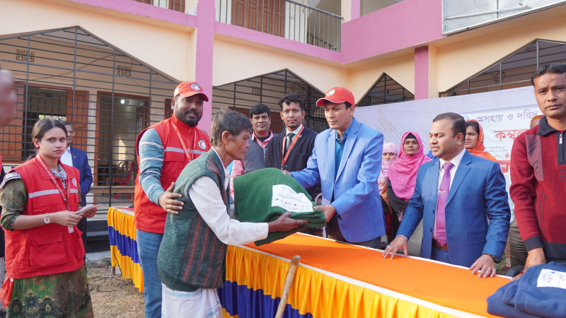 রেড ক্রিসেন্ট সোসাইটি রাজশাহী জেলা ইউনিটের পক্ষ থেকে কম্বল বিতরণ
