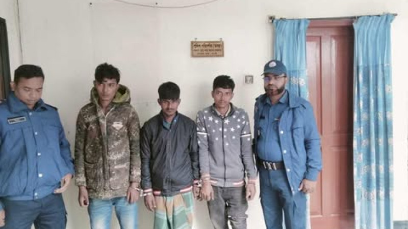 পোরশায় ডাকাতির প্রস্তুতিকালে দেশীয় অস্ত্রসহ তিন জনকে গ্রেপ্তার করেছে পোরশা থানা পুলিশ