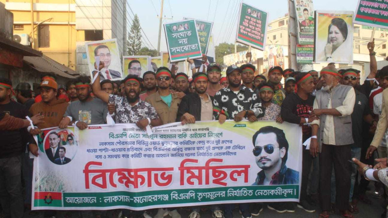 লাকসামে দু'গ্রুপের সংঘর্ষের প্রতিবাদে তৃণমূল বিএনপির বিক্ষোভ মিছিল