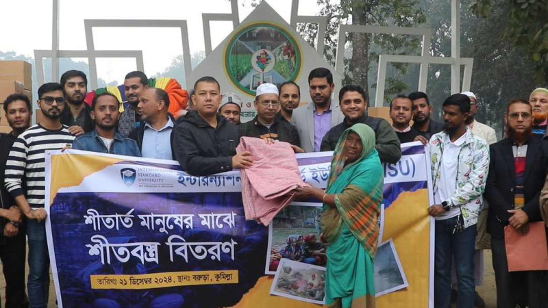 ইন্টারন্যাশনাল স্ট্যান্ডার্ড ইউনিভার্সিটির উদ্যোগে বরুড়ায় শীতবস্ত্র বিতরণ
