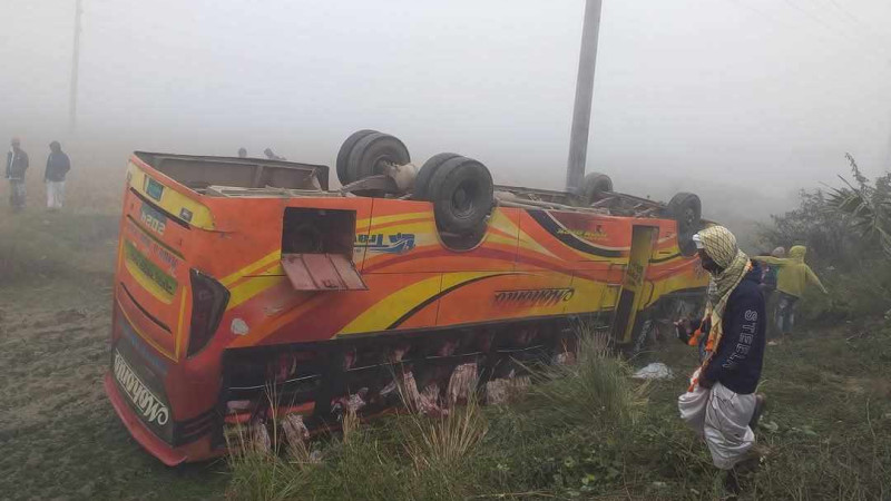 নওগাঁয় বাস উল্টে এক নারীর মৃত্যু