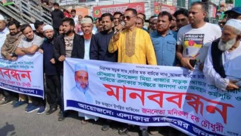 কুমিল্লার চৌদ্দগ্রামের মিয়া বাজারে আন্ডারপাসের দাবিতে মানববন্ধন