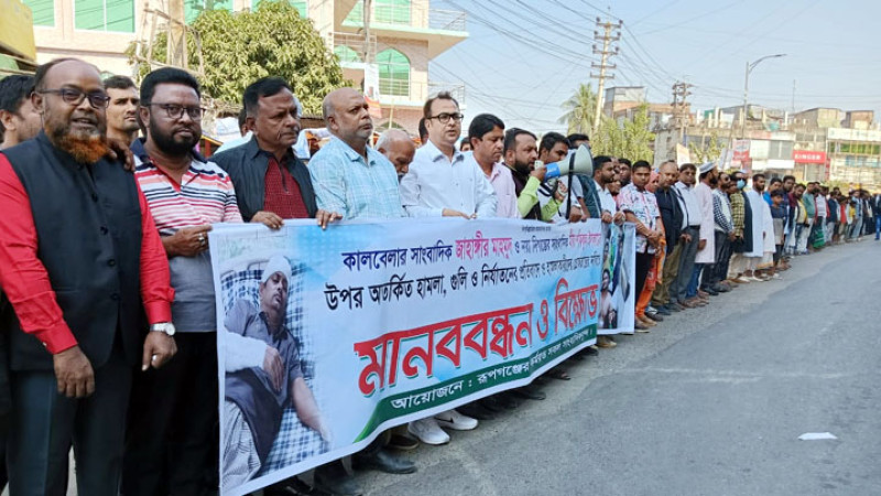 সাংবাদিক নির্যাতনের প্রতিবাদে উত্তাল রূপগঞ্জ: সন্ত্রাসীদের গ্রেপ্তারের দাবিতে মানববন্ধন