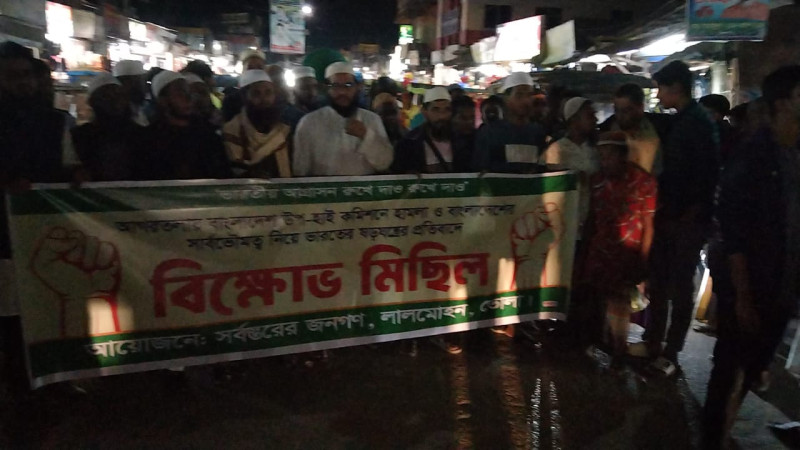 লালমোহনে বিক্ষোভ মিছিল ও সমাবেশ