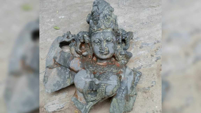 বগুড়ায় পানির নিচে থাকা পাথরের দুর্গামূর্তির অংশ উদ্ধার