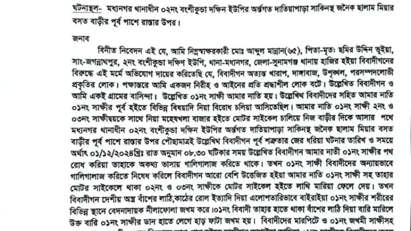সুনামগঞ্জে পূর্বশত্রুতার জেরে হামলার অভিযোগ